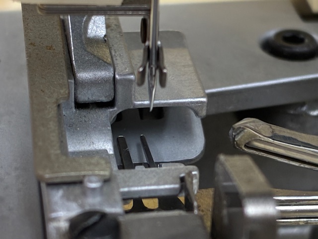 原因は針穴通し機構のがたつきにありました。