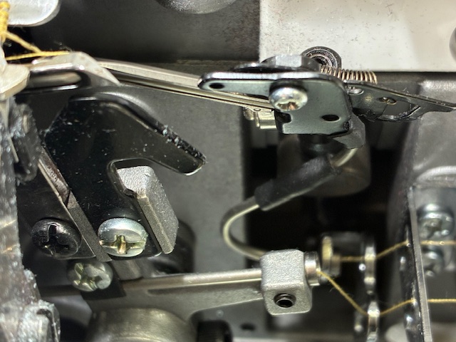 ルーパー糸通し具を使用してもダメでしたので、上ルーパーを一度取り外しました。
