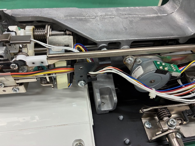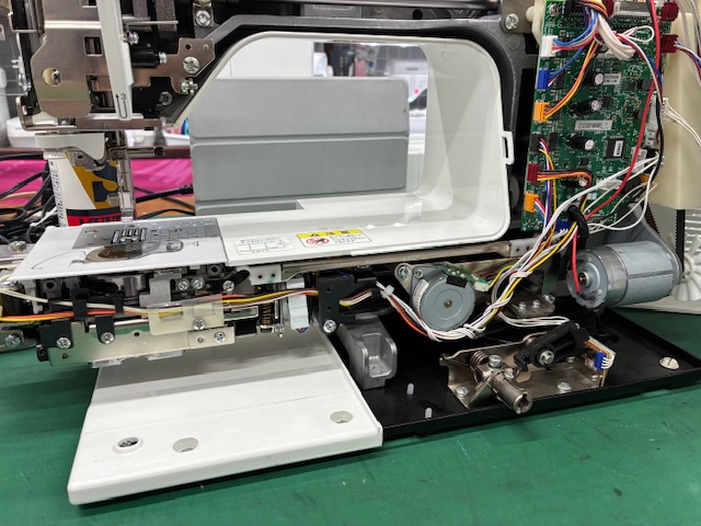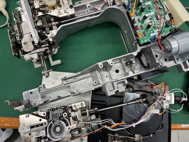 釜のタイミング調整や配線を行い、とりあえず通電・縫える状態まで組戻しました。