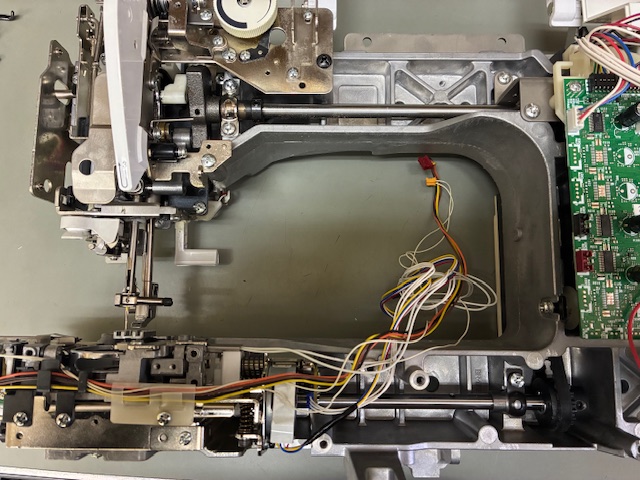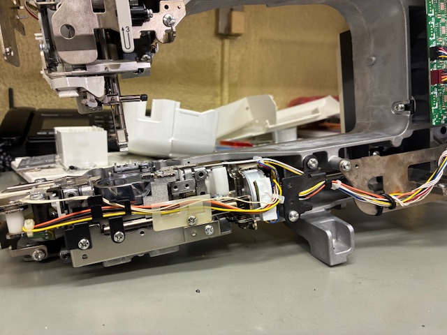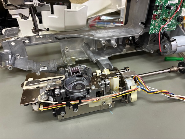 修理は針板SWがついている送りユニットの交換となります。