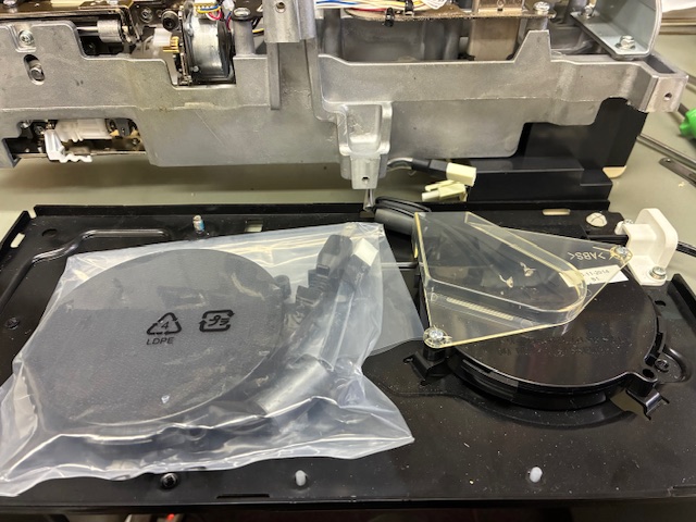 糸切りユニットはそのまま使用しますので外し、新しい送りユニットに組付けをいたします。