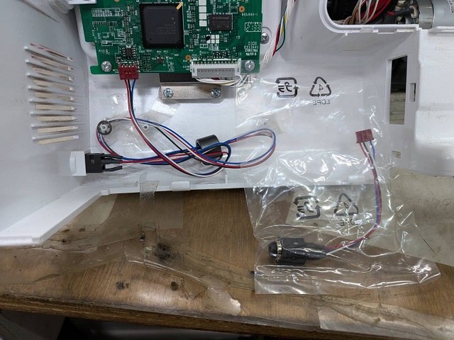 フロントパネルを開けフットコントローラージャックを新しいものに交換いたします。