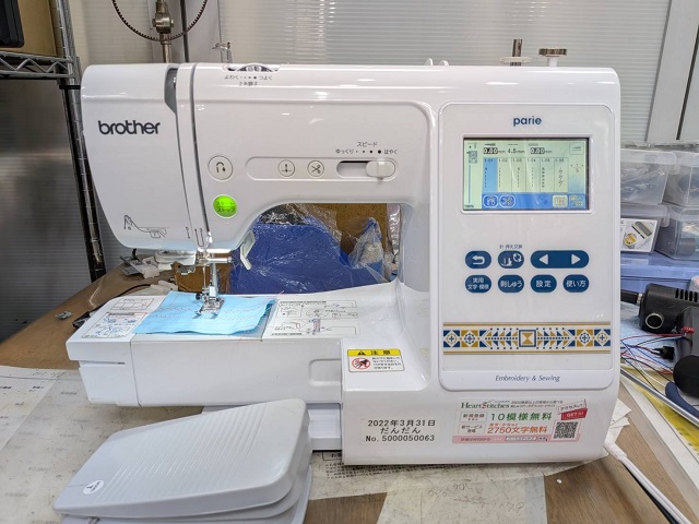 本日は東京都荒川区にある日暮里ショールームにてお預かりしました“ブラザー コンピュータミシン パリエ(刺しゅう機能付きミシン)”です。