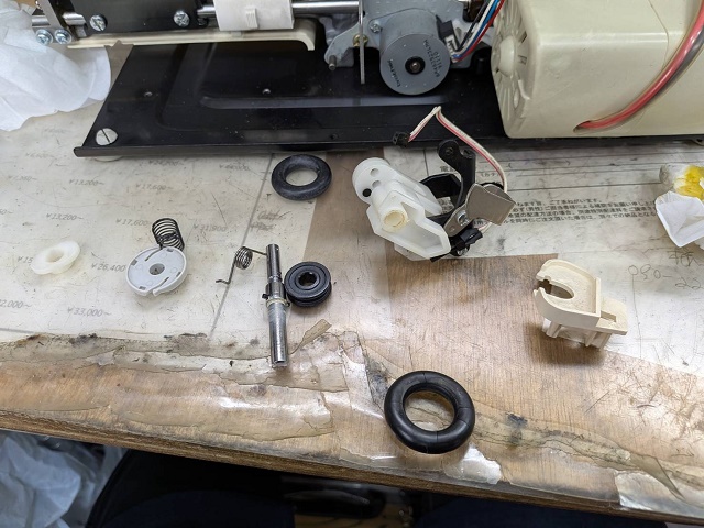 修理箇所|下糸巻装置分解調整及びゴム輪の交換・その他全体的なメンテナンス