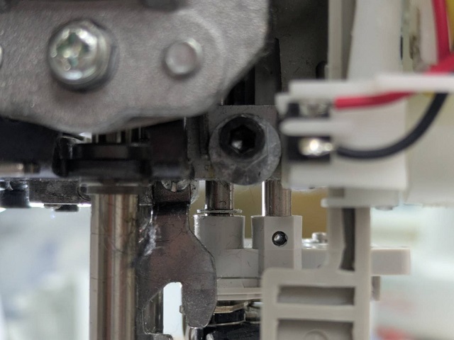 針穴通し器不良の原因は針穴通し機構の問題ではなく、針棒糸掛けの変形にありました。