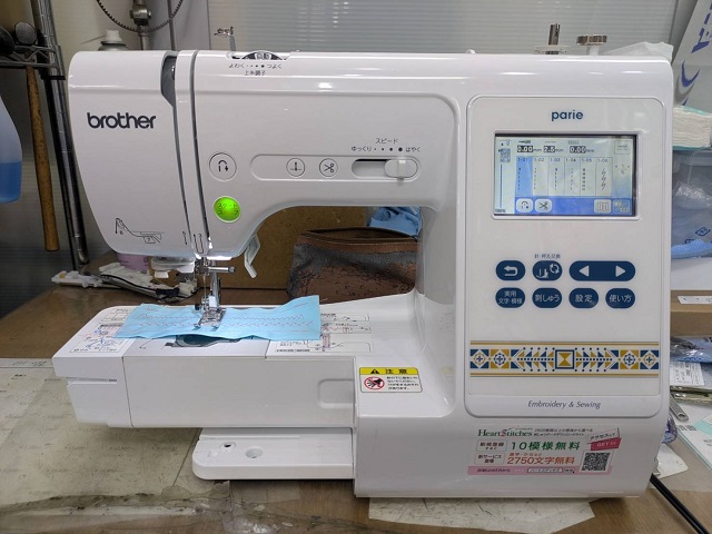 本日は長野県から宅配便にてお預かりした“ブラザー コンピュータミシン パリエ(刺しゅう機能付きミシン)”です。