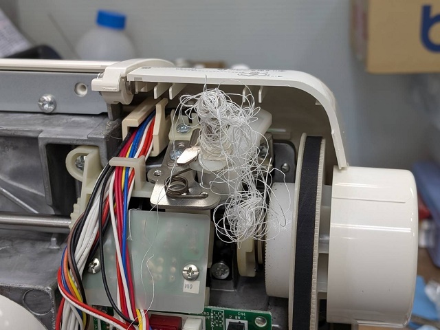 今回のように下糸巻に糸を絡めてしまう修理はよくあります。