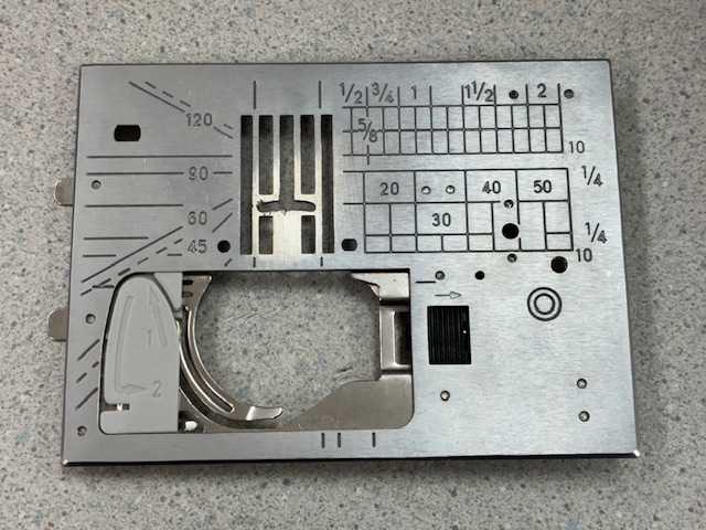 針板は針が落ちる針穴の一部が折れており、生地が上手く送れない状態でした。