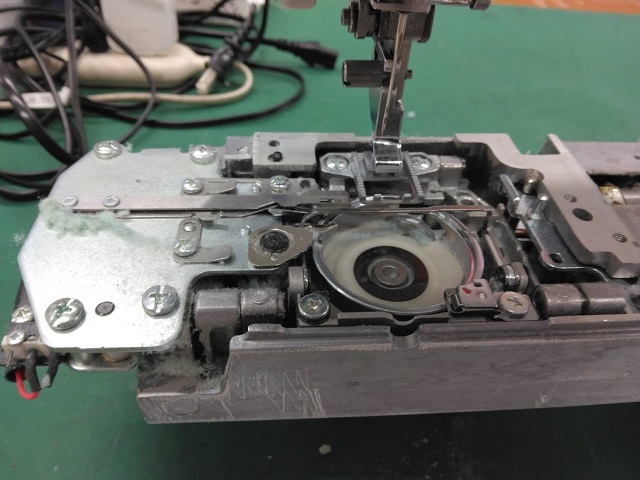 釜周辺の各機構にある埃がミシンの動きを悪くして異音の原因になっておりました。