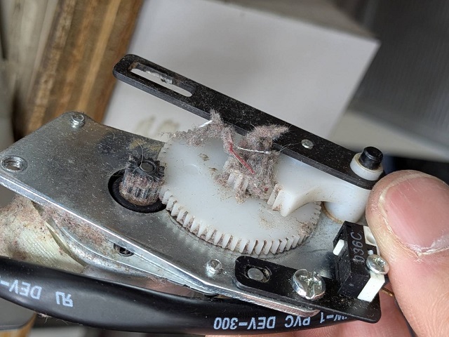 自動糸切りの駆動ギアにも確認でき糸切りが動かない状態でした。