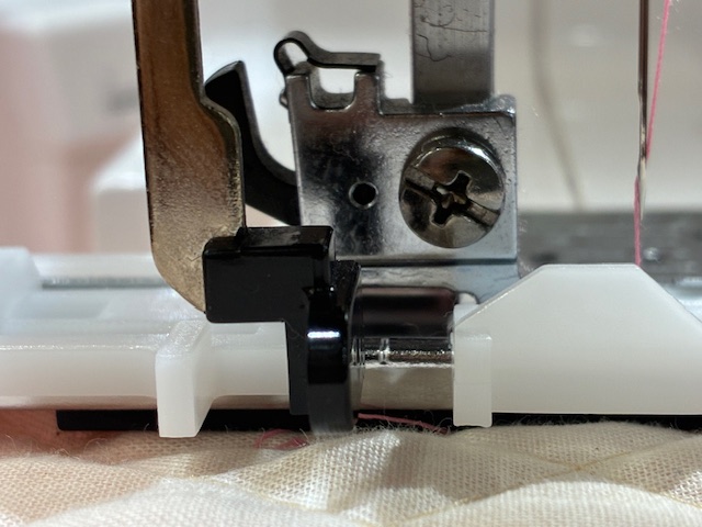 押さえについている突起物にレバーが接触して大きさや縫い終わりを感知いたします。