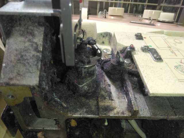 送り歯の溝にも埃があり送り歯があがりにくく、布送りに影響しておりました。