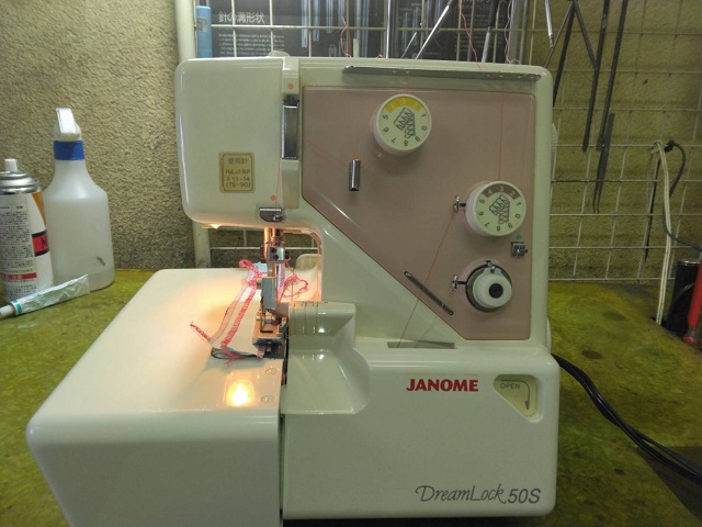 本日は、東京都北区にて出張修理でお預かりの“ジャノメ ロックミシン ドリームロック50S(3本糸ロック)”の修理です。
