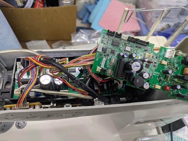 本日は、東京都荒川区ある日暮里ショールームにてお預かりの“ジャノメ 職業用ミシン HS70”の修理です。