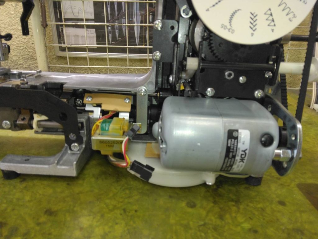 モーターミシンの前側にあり、接続先の基板は背面にありますので、外装をすべて外す必要があります。