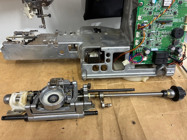 まずはミシンの動きが重くないよう組付け、釜のタイミング・送り歯の位置調整を行います。