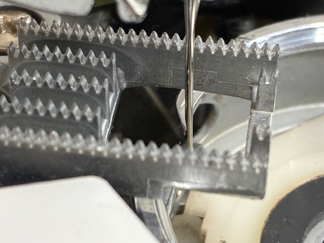 近すぎると異音、針折れの原因になり、離れすぎると目飛びの原因となります。