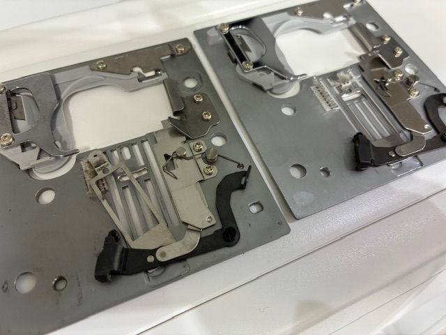 針板を裏側から見ると開閉の為にスライドする部品が破損しておりました。