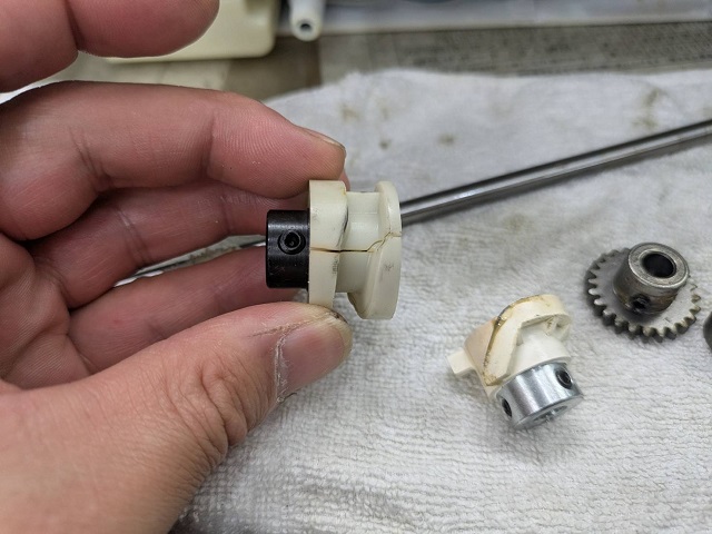 このようにひびが入っているとメスの動き量や動くタイミングに影響してきます。