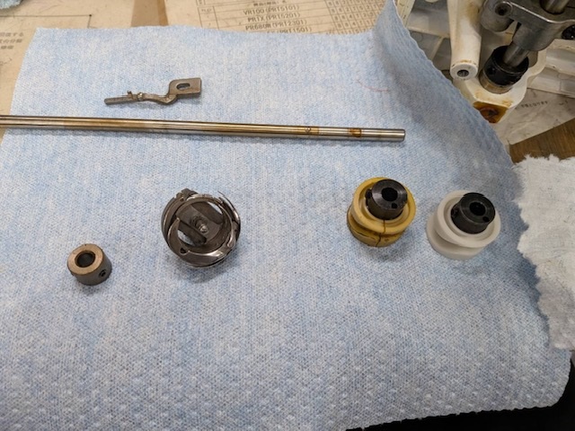 糸切りカムの交換には釜を含めた下軸を一度取り外しが必要になります。