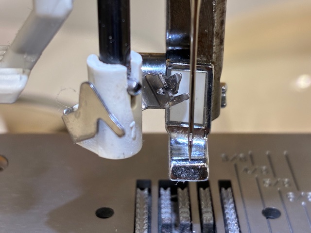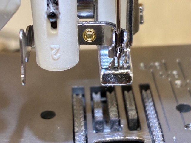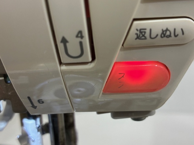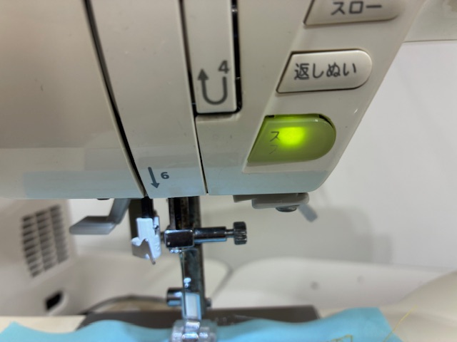 交換後押さえを下げると緑色の点灯にかわり、ミシンは動くようになりました。
