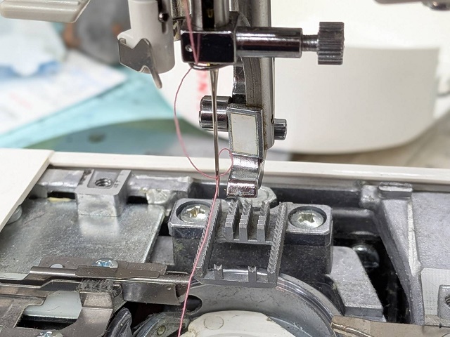 こちらは糸調子や針折れ等の不良原因となりますので調整いたします。