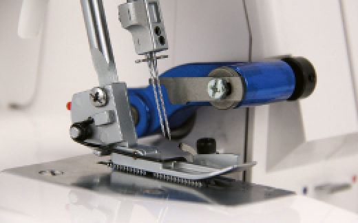 生地によってメス位置を調節することで、かがり縫いも全巻き縫いも美しく仕上がります。